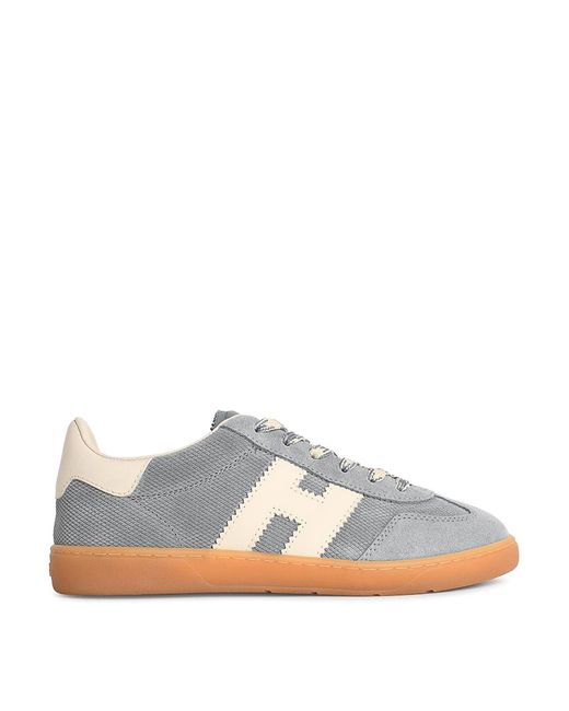 Suede with smooth leather tongue, contrast h' monogram side insert, conrasto heel, memory foam insole, logo rubber sole. Colour: white