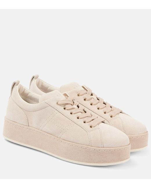 H710 H-Stripes Leather And Suede Platform Trainers - White