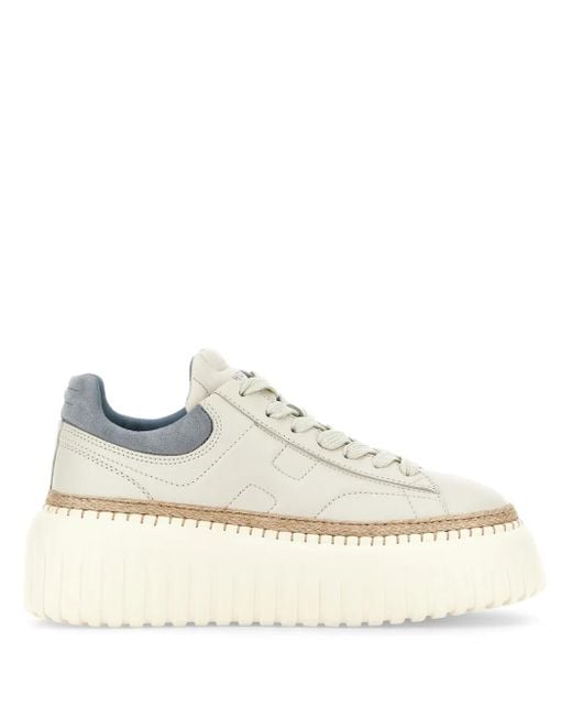 H710 H-Stripes Leather And Suede Platform Trainers - White