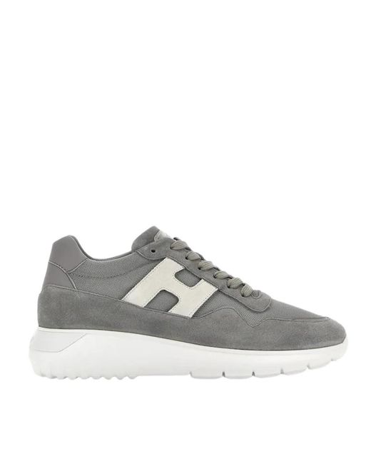 Elevate your style with these Hogan trainers for men. Crafted from suede with technical fabric inserts and a split leather H detail on the side. The memory foam insole provides a comfortable fit. Hogan generally runs large in size. Consider sizing down Colour: grey