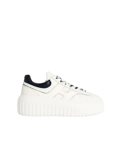 Hogan H-Stripes Trainers combine a clean leather upper with the brand’s signature side H detail and cushioned memory-foam comfort. Designed for everyday wear, they pair a refined aesthetic with practical support for city use. Key attributes: White | Leather | Cushioned memory-foam insole | EVA sole | Lace-up closure | Side H with contrasting edges | Soft nappa details | Round toe | Dimensions & fit: Fits true to size | Regular width | Composition & care: Leather Colour: white