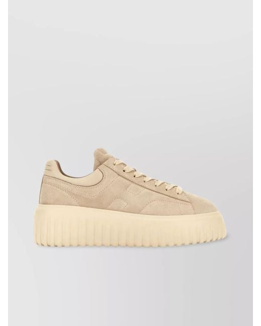 Women's Natural Suede Platform Trainers Round Toe
