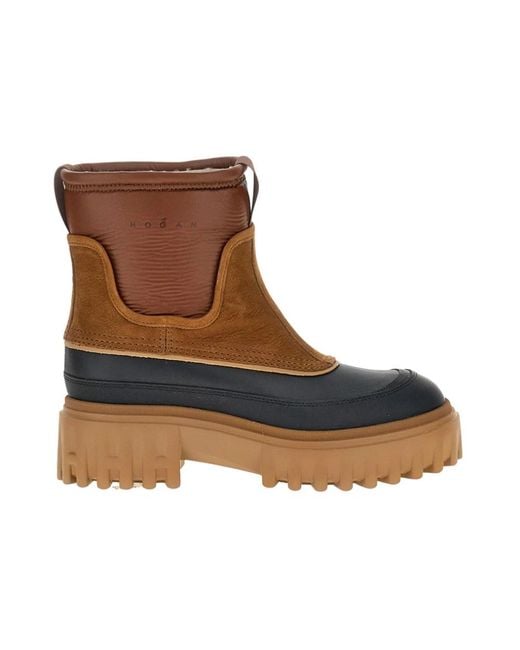 Hogan H700 Ankle Boot — a smooth leather winter boot featuring a chunky rubber platform and an internal side zip for easy on/off. Model confirmed as H700 (Mpn Hxw 7000Fv 60Ulc 0Uug). citeturn 0search 0turn 0search 5 Key attributes: Brown | Calf leather | Internal side zip | Coordinated leather insole | Leather lining | Rubber platform sole (approx. 4 cm) | Round toe | Monochrome finish | Tone-on-tone embossed "H" logo on the side | Dimensions & fit: Platform height: 4 cm. | Composition & care: Upper: Leather | Lining: Leather | Insole: Leather | Sole: Rubber Colour: brown