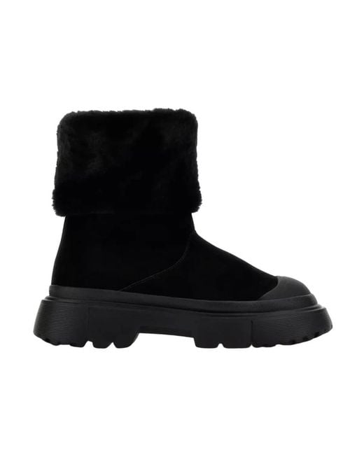 Experience the perfect blend of style and comfort with these Black Furry Ankle Boots Slip-On by Hogan. Designed for winter, these boots feature a luxurious faux fur lining and a convenient slip-on style, making them ideal for cold weather outings. Key attributes: Black | Calfskin Leather | Slip-on style | Round rubber toes | Faux fur lining | Composition care: Calfskin leather Hogan generally runs large in size. Consider sizing down