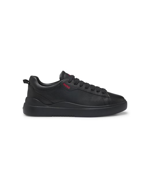 S Morrie Tenn Faux-leather Trainers With Red Logo Flag Size 7 - Black