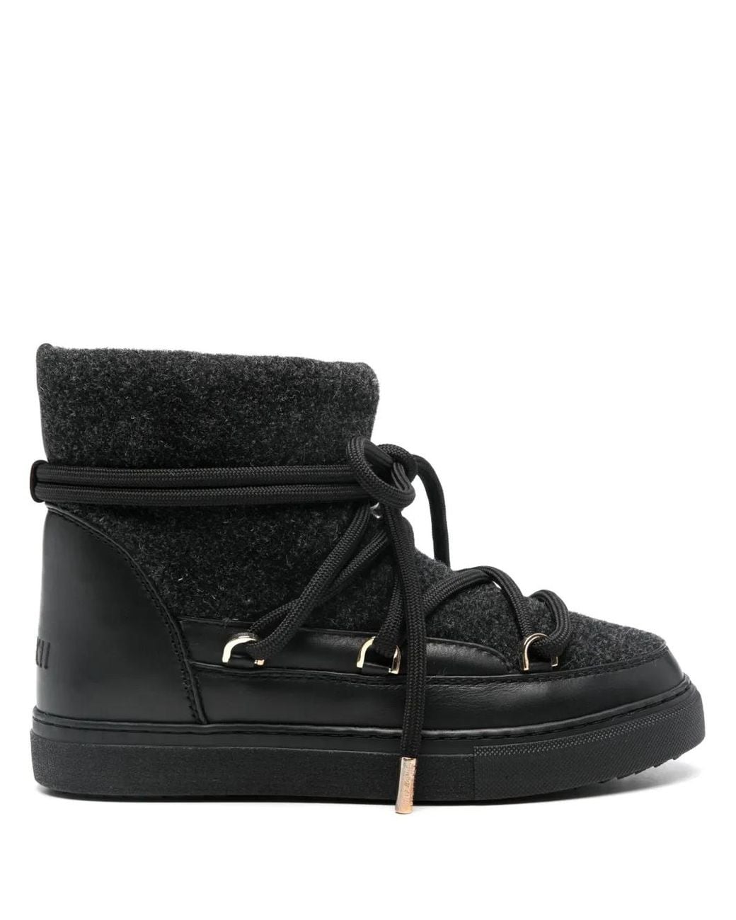 Black felted finish mélange effect panelled design front lace-up fastening leather panel corners embroidered logo to the rear round toe branded insole flat rubber sole shearling lining ankle-length Size: 36. Gender: Female. Material:Calf Leather/Fabric/Calf Leather/Fabric/Rubber. Colour: black