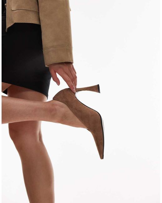 Women's Brown Heeled Pointed Court Shoes