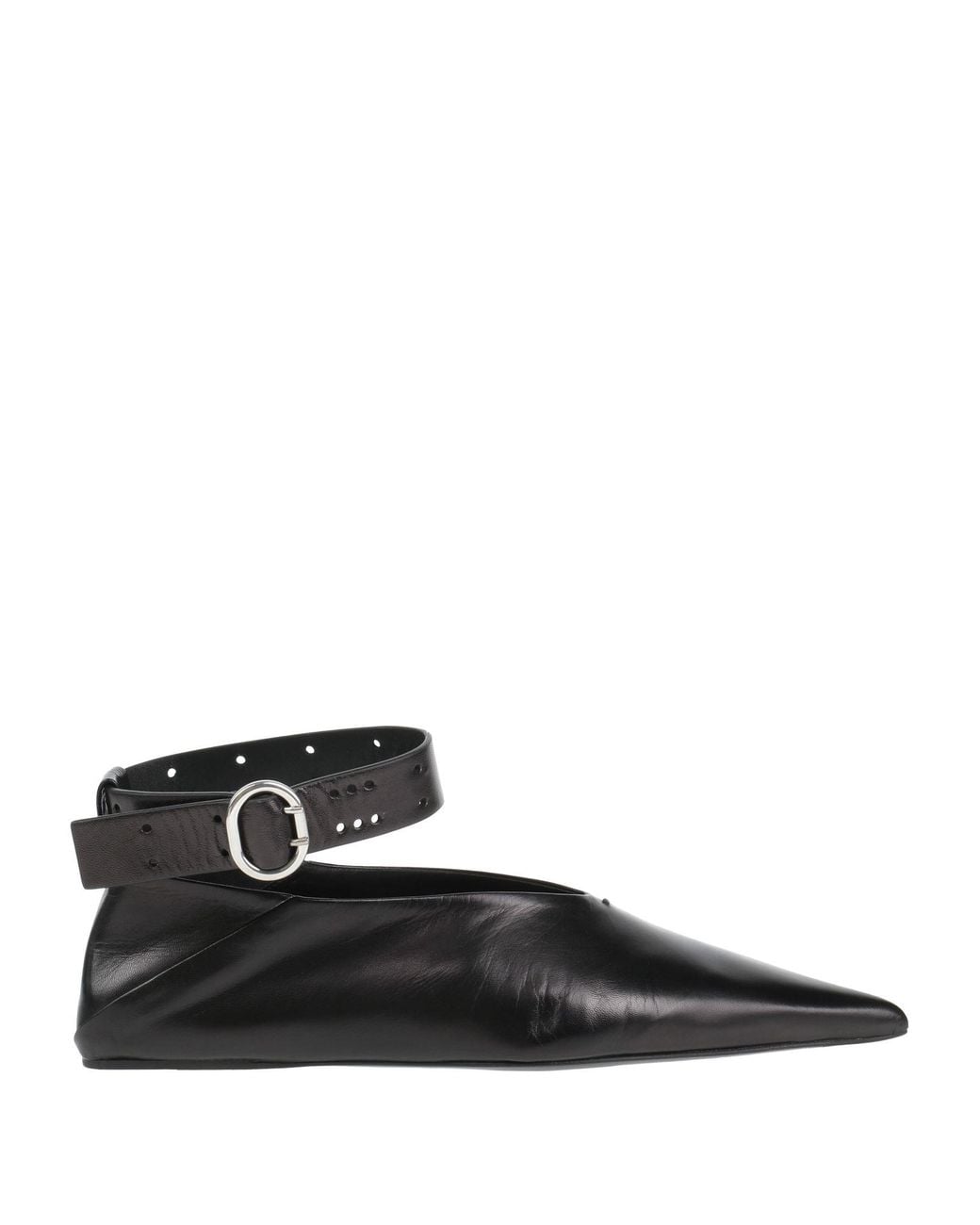 JIL SANDER. ballet flats, leather, plain colour, no appliqués, leather lining, buckle-fastening ankle strap, pointed toe, flat, leather/rubber sole, contains non-textile parts of animal origin. Leather.