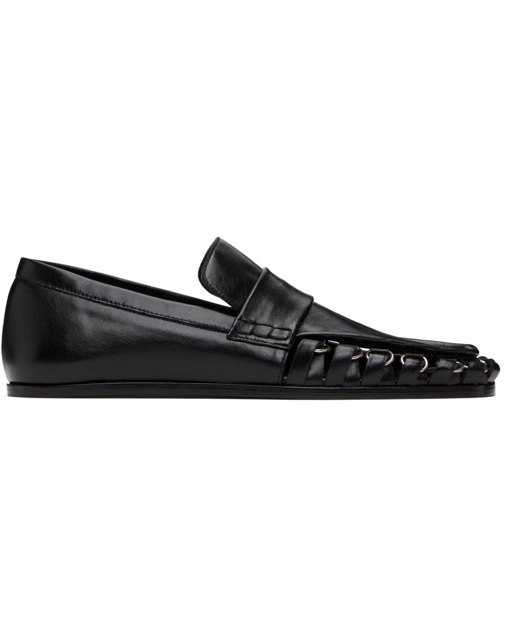 Grained sheepskin loafers. · Square toe · Cutouts with D-rings at toe and sides · Strap at vamp · Leather sole with rubber injections Supplier color: Black Colour: black