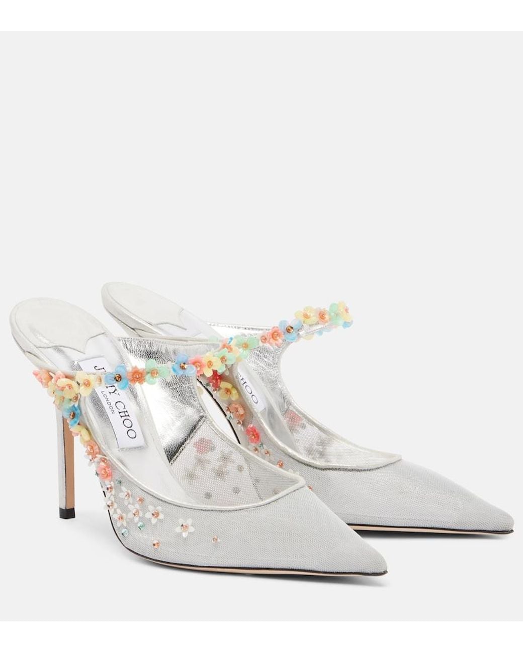 Women's White Bing Daisy 100 Embellished Mesh Mules