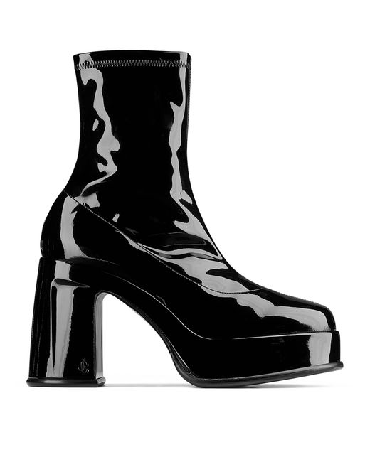 Sculptural, statement and sculptural: the Jimmy Choo trifecta comes to life in the Hadi ankle boots, a towering pair set atop a robust block heel. The uppers are made from patent fabric that has a stretchy texture for a lightweight, second-skin feel. Colour: black