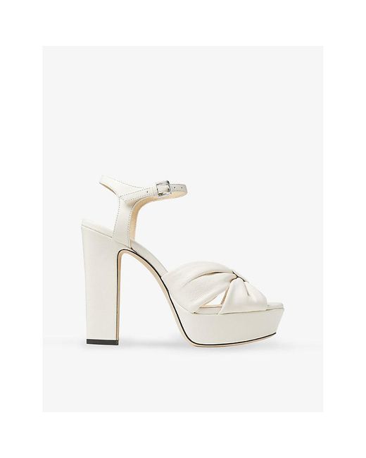 Women's White Heloise 120 Knotted-Strap Leather Platform Heels