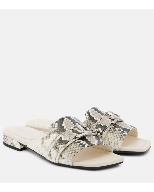 Women's White Nako Snake-Effect Leather Slides