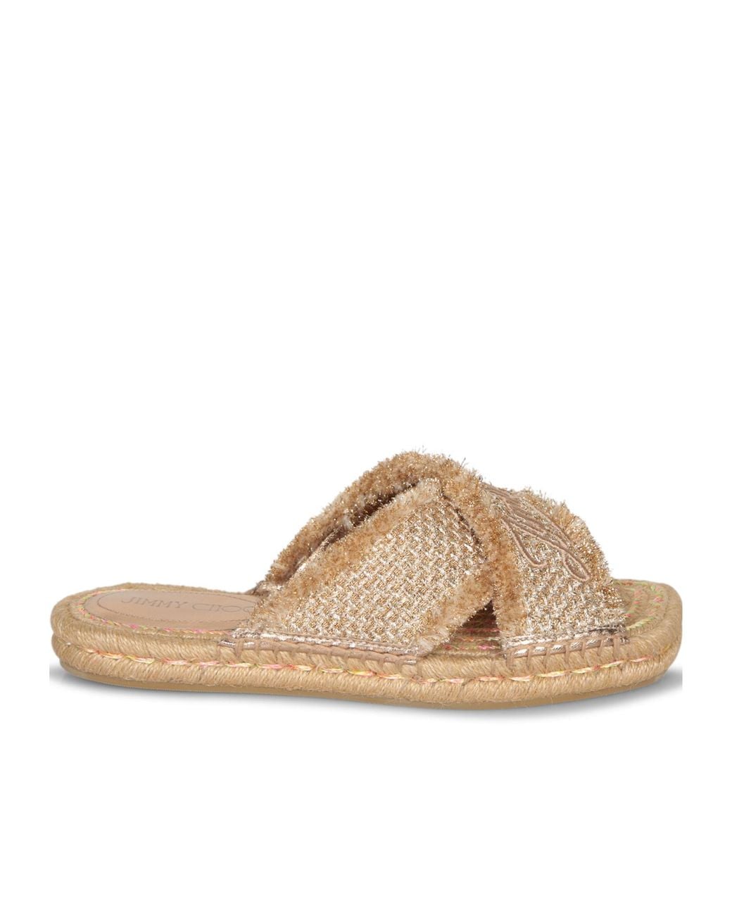 Slip-on sandals with woven upper Fabric footbed with raffia detailing No-closure design Colour: brown