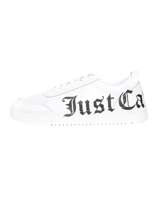 Elevate your style with these Just Cavalli white trainers for men featuring a bold contrasting logo print on the side. Crafted from leather and rubber, these trainers are designed with lace-up closure, round toe, and a back pull tab for easy wearability. Perfect for both casual and slightly formal looks, these low-profile white trainers are a versatile choice for various occasions during the autumn-winter season. Product code: 77Qa 3Sm 5Zp 397003. Colour: white