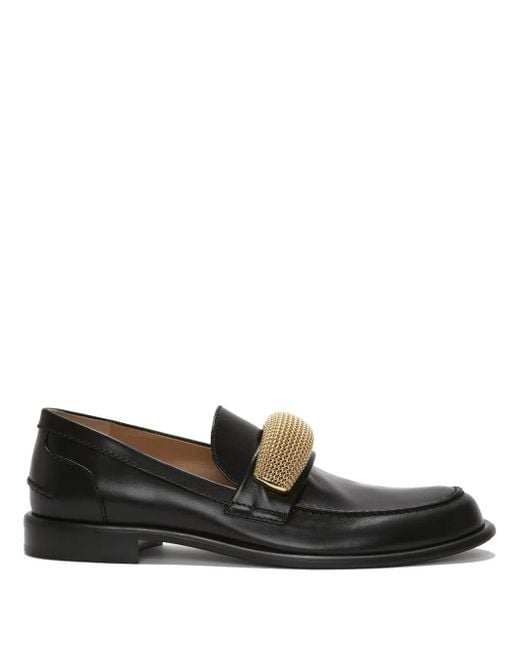 Black leather appliqué detail gold-tone hardware round toe slip-on style branded leather insole flat sole Size: 36. Gender: Female. Material:Leather. Colour: black