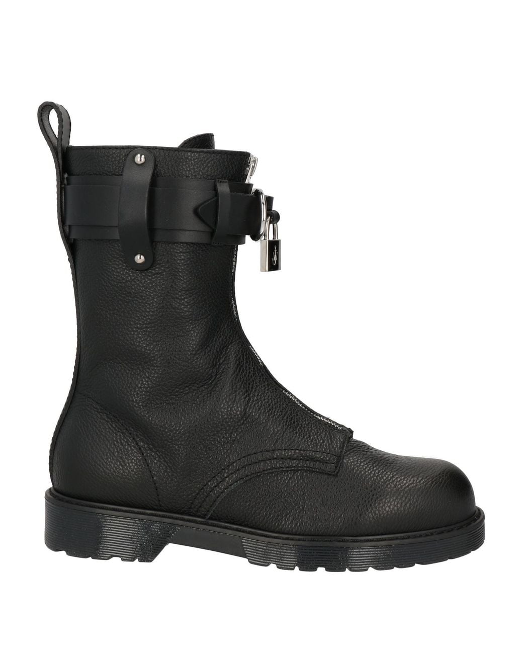 JW ANDERSON. boots, pebbled-leather, plain colour with appliqués, strap detailing, buckle, leather lining, zip fastening, round toe, square heel, rubber heel, lug sole, contains non-textile parts of animal origin. Calfskin.