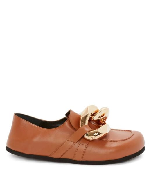 Tawny sheepskin chain-link detailing round toe slip-on style flat sole Size: 35. Gender: Female. Material:Leather.