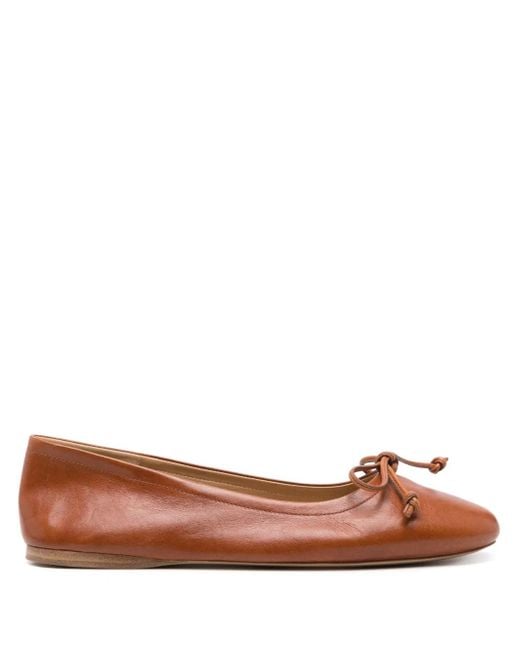 Women's Brown Round-Toe Leather Ballerina Shoes