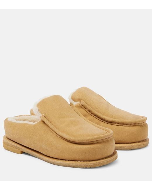 Shearling-Lined Suede Mules