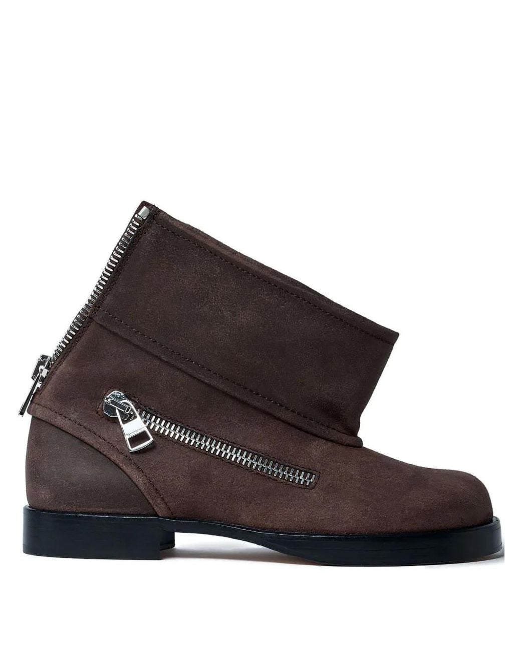 Brown zip details round toe Size: 36. Gender: Female. Material:Leather/Suede/Suede. Colour: brown