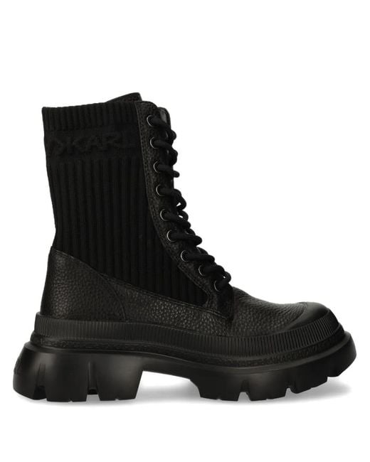 Black front lace-up fastening chunky rubber sole panelled design ankle-length Size: 39. Gender: Female. Material:Fabric/Rubber/Polyurethane/Fabric/Calf Leather. Colour: black