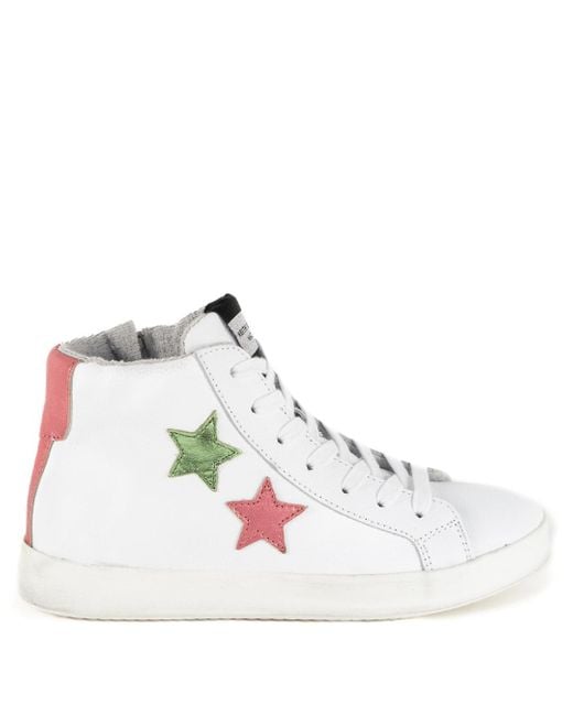 This is the first time we've designed an (almost!) all white hi-top and we think it is going to be absolutely perfect for Spring/ Summer. Minimo is cut in our classic hi-top silhouette from crisp, white leather and features our handy side zip and lace up front. Minimal detail is added in the form of two small stars in a pink and green metallic, and matching pink heel piece. The sole is distressed for that much sought after 'worn in' feel. Uppers - 100% Leather Lining - Leather and textile Sole - Rubber Protect and nourish the leather with a neutral polish and a soft cloth. Wipe dirt off with a damp cloth. Colour: white