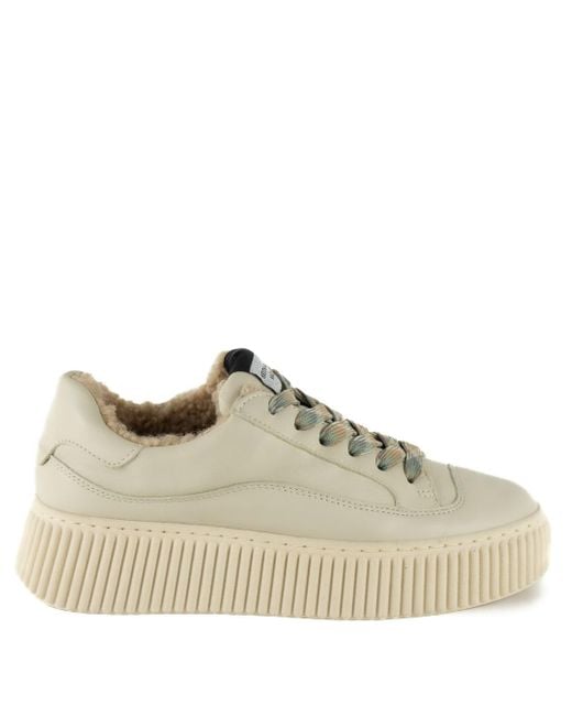 If you loved our golden Sole trainers in the summer you will adore our winter version! Hand made in Italy from the most luxurious, cream hued leather, Sole rests upon an eye catching and oh so comfortable chunky sole which features a ribbed texture. The cream hued and slightly stepped out sole accentuates the other wise classic silhouette of this fabulous trainer and is complimented by pastel hued laces. Part lined with soft, shearling you will be kept super cosy all winter long. Pair with literally anything and be chic and comfortable from day to night. Uppers - 100% Leather Lining - Leather and Textile Mix Sole - Rubber For suede a neutral scotch guard will offer extra protection. If they get wet allow them to dry naturally and repeat use of scotch guard. A soft suede sponge or brush will help rejuvenate the suedes texture. Colour: brown