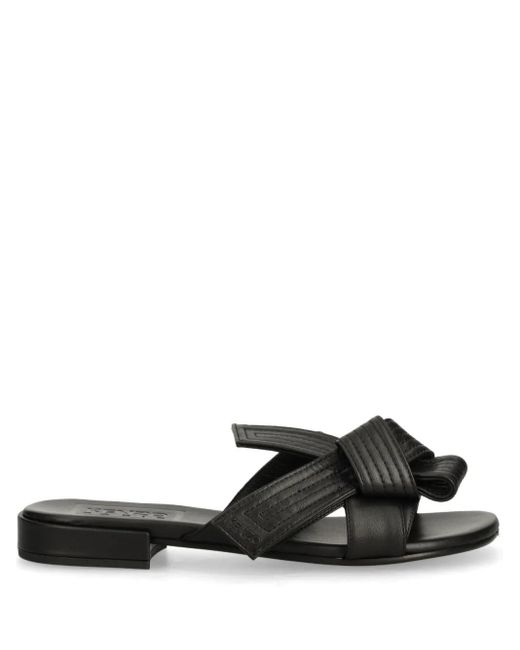 Black lambskin smooth grain slip-on style knot detailing diamond-quilted detailing logo-embossed strap open asymmetric toe branded footbed flat leather sole Size: 36. Gender: Female. Material:Lambskin/Lambskin/Lambskin. Colour: black
