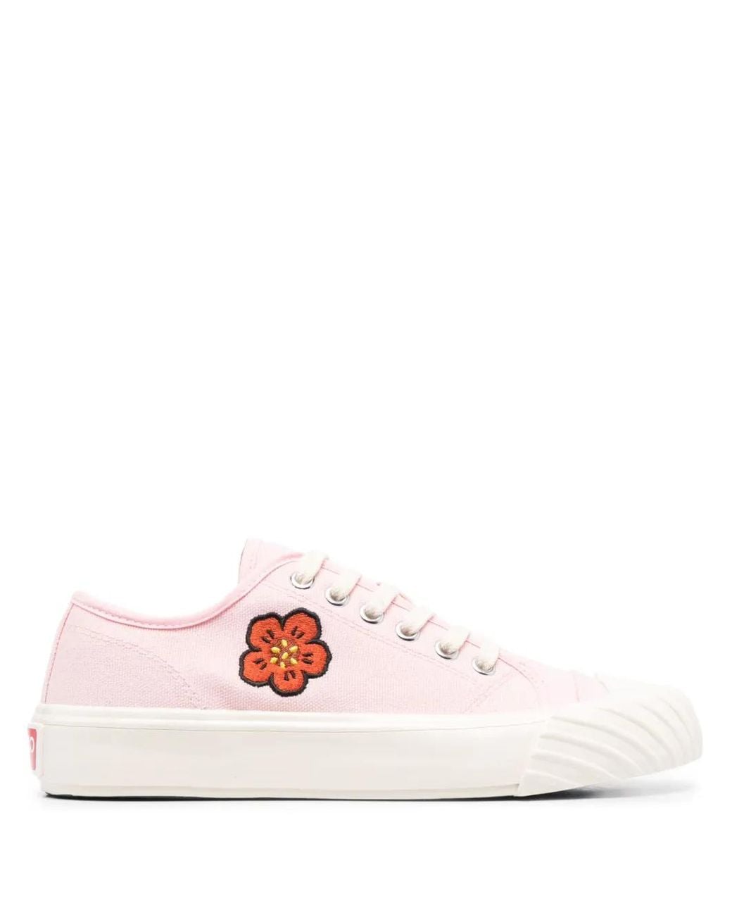 Light pink canvas signature Boke Flower motif floral embroidery logo-embroidered tongue logo tag contrasting toecap front lace-up fastening branded footbed logo at the sole flat rubber sole Size: 36. Gender: Female. Material:Rubber/Cotton/Fabric.