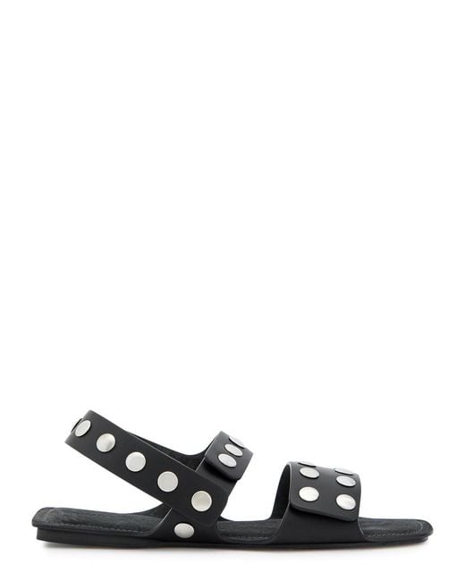 Info & Care KHAITE leather sandals; Stud embellishments, suede footbed, open square-toe Adjustable press-stud fastening ankle strap Size & Fit Only available in full sizes, go up to the nearest whole size if you take a half size Colour: white