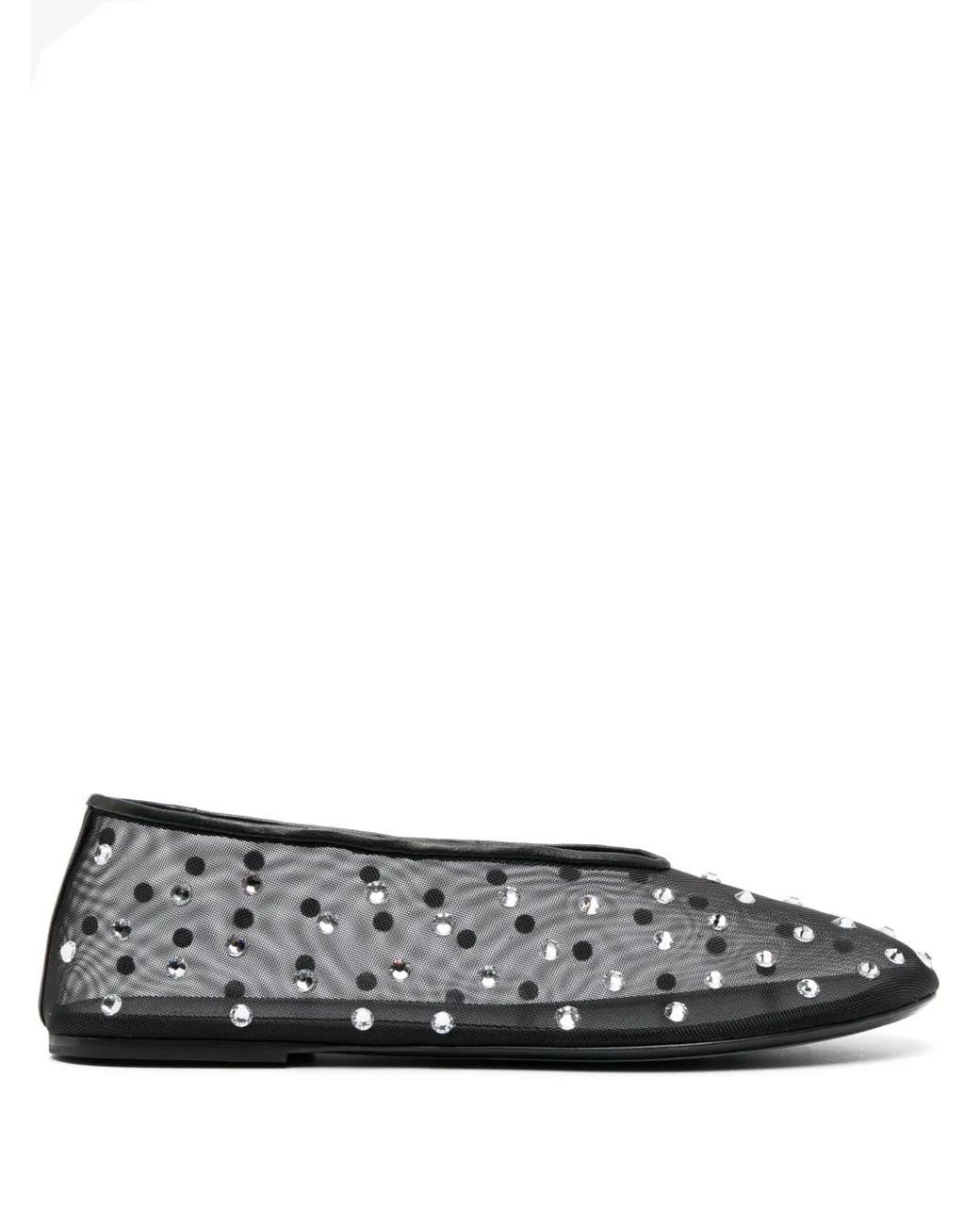 Marcy Crystal-Embellished Mesh Ballet Flats - Black