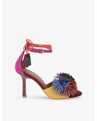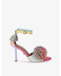 Kurt Geiger Women's Blue 30Mm Pom Pom Sandals