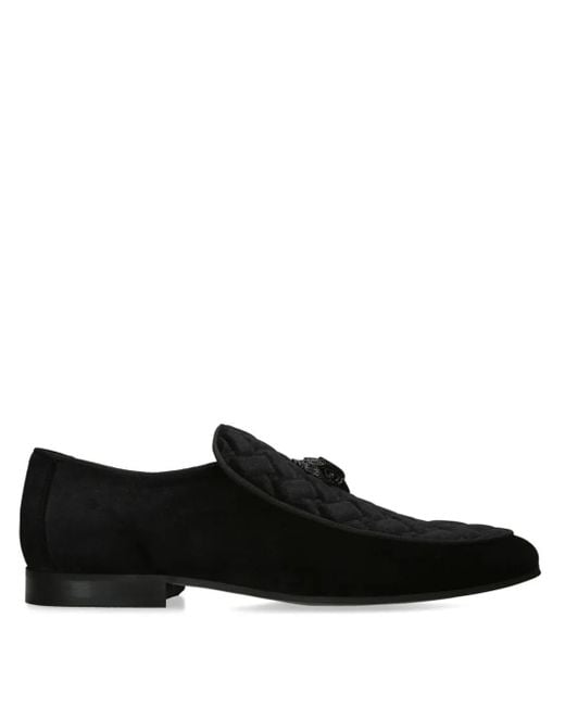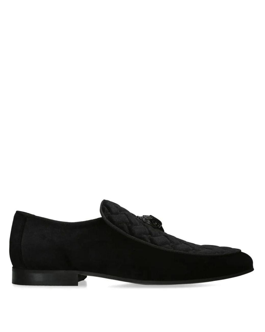 Men's Black Eagle Head Velvet Loafers