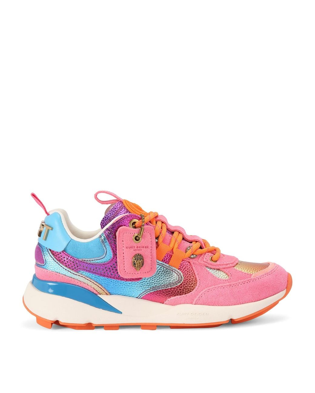 A refined streetwear silhouette meets a play of colour in these Kurt Runner trainers, offering charisma in abundance. The chunky flat sole and lace-up fastening provide ease of movement, while the contrasting details are sure to add a splash of vibrancy to any outfit. Complete with Kurt Geiger London’s signature tag, this pair is poised to become an instant classic in your collection. Colour: pink