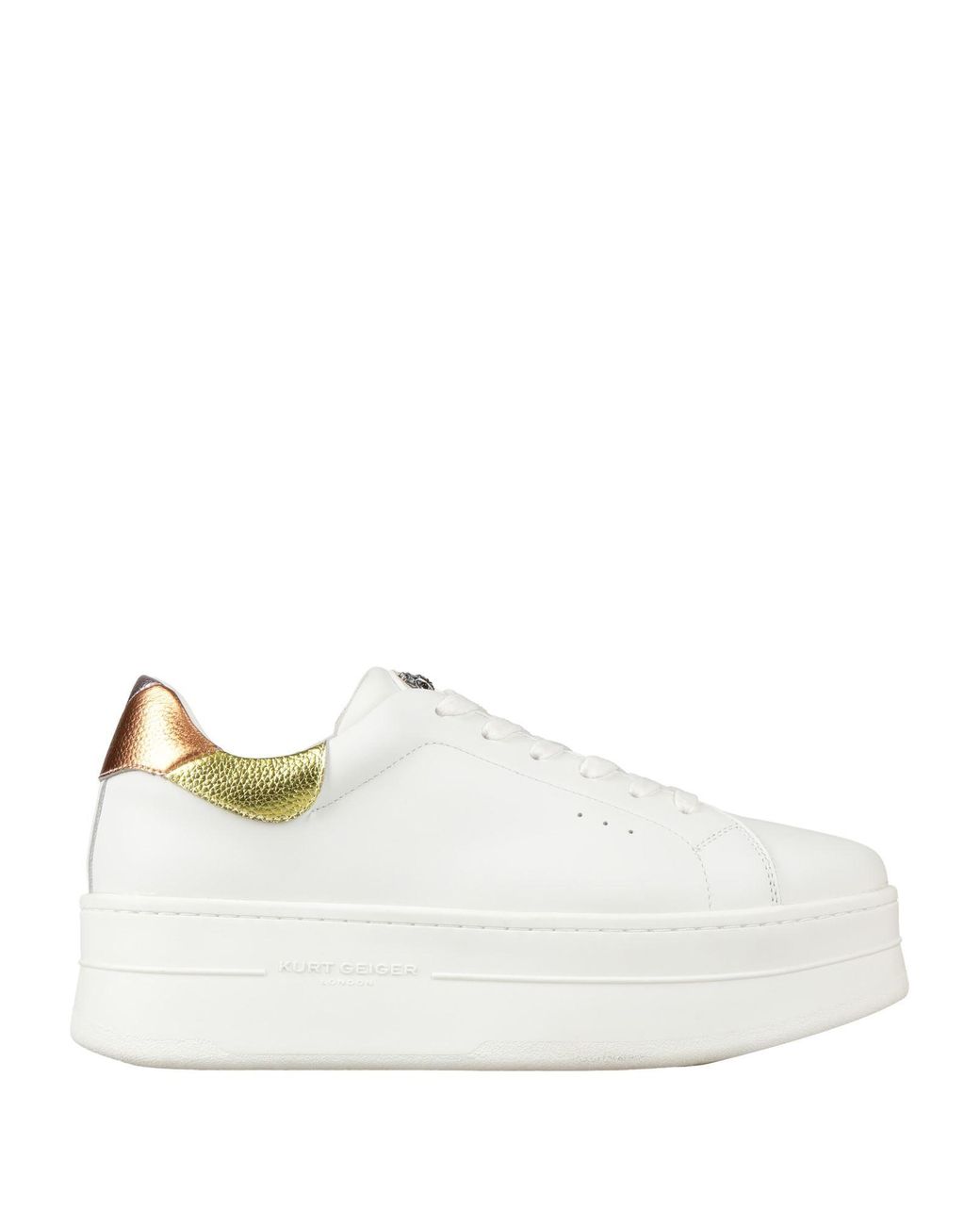KURT GEIGER. chunky trainers, leather, metallic, plain colour, logo-embellished, lace-up, round toe, fabric inner, fabric sole, contains non-textile parts of animal origin. Leather. Colour: white