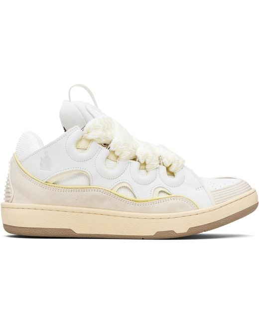 Low-top calfskin suede, nappa calfskin, and mesh trainers. · Piping, cutouts, and rubberized trim throughout · Perforations at toe · Logo embossed at toe and outer side · Lace-up closure · Logo plaque and pull-loop at tongue · Padded tongue and collar · Jersey lining · Treaded rubber sole Supplier color: White/Beige Colour: black
