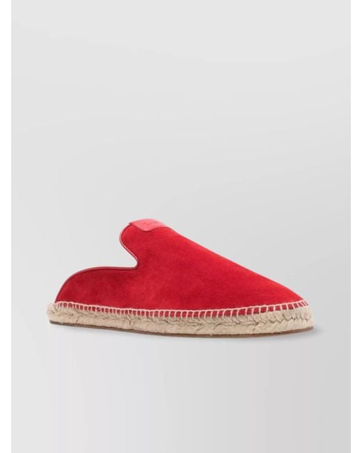 Round toe | Flat sole | red | braided raffia sole | whipstitch trim | Contrast stitching | branded footbed | debossed logo to the front | Slip-on design Colour: red