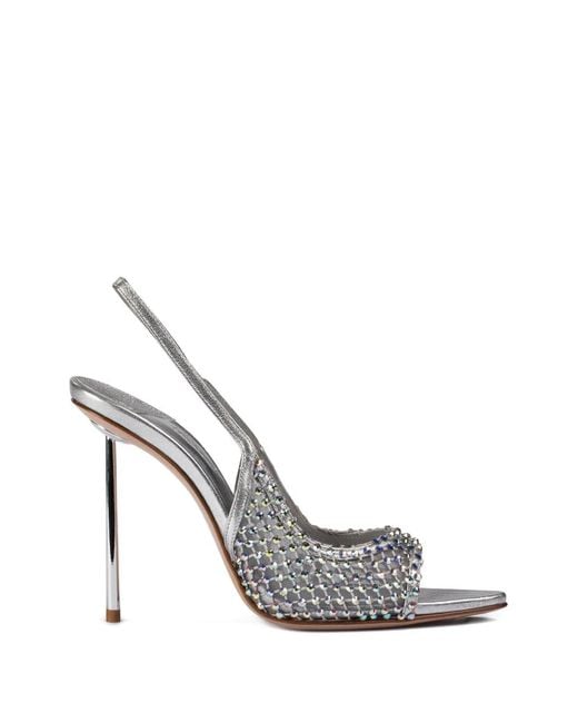 Silver-tone embellished 120mm heel slingback strap pointed toe Size: 38.5. Gender: Female. Material:Calf Leather/Crystal/Fabric/Calf Leather/Calf Leather. Colour: white