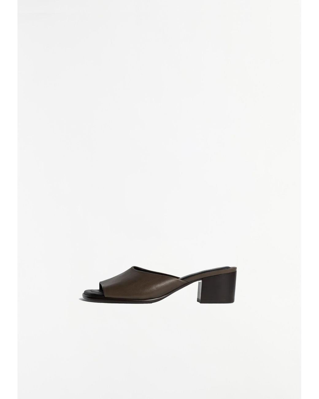 Lemaire brown mules with a wide strap and square stacked heel in vegetable-tanned leather. Features a round toe, leather insole and outsole. Sizing: European (36-41). 100% Leather. Lining: 100% Sheep Leather. Made in Italy. Colour: white