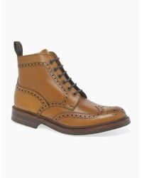 Go to TOWER LondonThese wide fit tan brogue style ankle boots from Loake are styled in smooth tan leather with brown top stitching and punched dole detailing, as well as a canvas pull tab at the