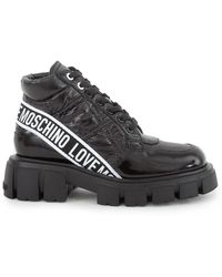 Go to MiintoLove Moschino Quilted soft fabric ankle boots pair quilted detailing with a logo-button pocket for a stylish, everyday winter boot. The rubber sole provides reliable grip for city wear. Key attributes: Black |