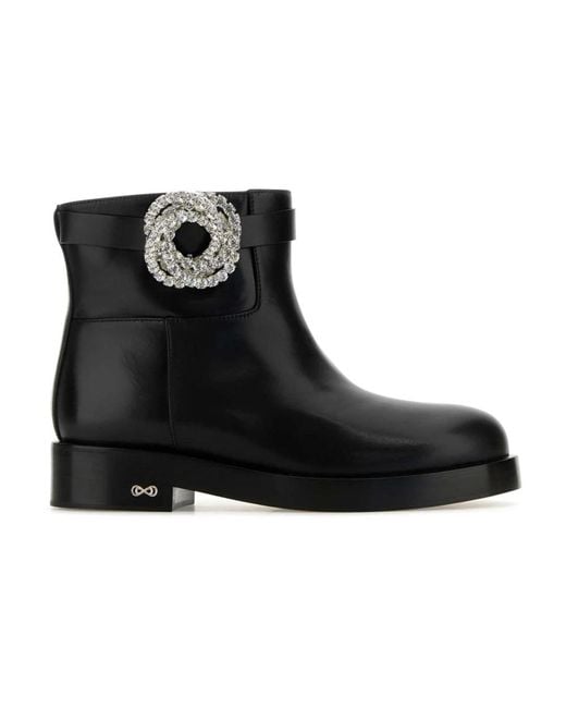 Leather Crystal-Embellished Ankle Boots - Black