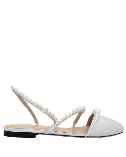 Women's White Pearl-Embellished Sirene Ballerina Shoes