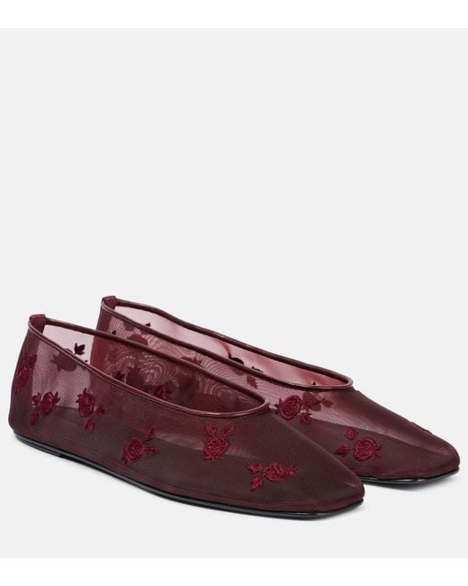 Embroidered Mesh Ballet Flats