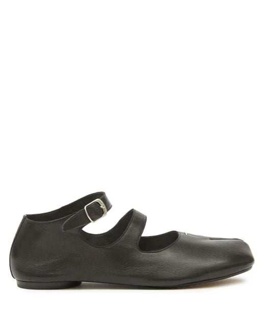 Black leather buckle-fastening ankle strap signature Tabi toe signature single-stitch logo flat sole Size: 38.5. Gender: Female. Material:Calf Leather/Calf Leather/Calf Leather.