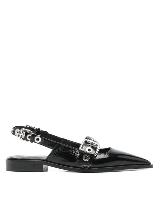Black leather eyelet detail strap pointed toe block heel buckle Size: 36. Gender: Female. Material:Goat Skin/Calf Leather/Rubber/Zamak/Calf Leather. Colour: black