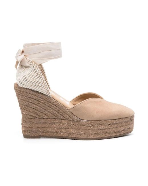 Elevate your style with these Manebí taupe brown calf suede wedges. Featuring a 110mm braided raffia wedge heel, round toe, and tie-fastening ankle strap. Perfect for a feminine and chic look. Heel height: 4.1 in / 10.5 cm, Platform height: 1.6 in / 4 cm.