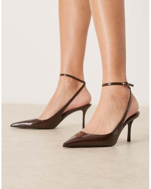 Faux Leather Ankle Tie Pointed Heeled Slingback - Natural