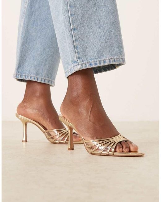 Gold Toe Ring Detail Kitten Heel Sandal - Natural